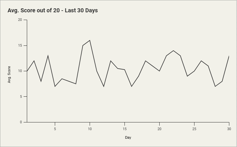 Average Meta Ads Score across all submissions over the last 30 days — most accounts score between 8 and 14 out of 20, revealing major structural gaps.